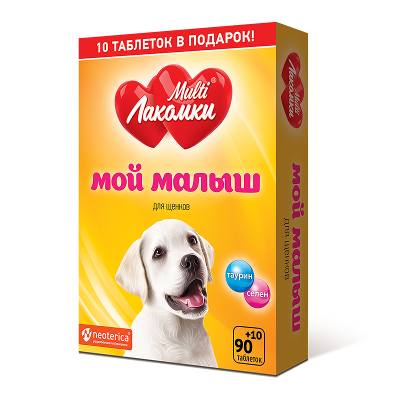 The feed supplement "MultiTreats My Baby" is recommended for puppies over 4-week-old. It is designed for encouragement and dry food training, and as well it is an additional food source of biologically active substances which helps normalization of metabolic processes. Strengthens bones and teeth, promotes growth and development of the body and helps prevent rickets.
